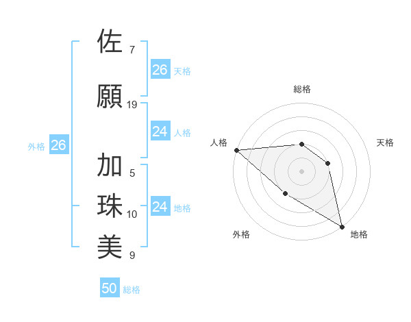 佐願 加珠美さんを姓名の画数から五運を鑑定