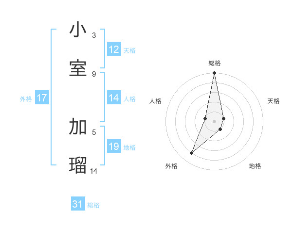 小室 加瑠さんを姓名の画数から五運を鑑定