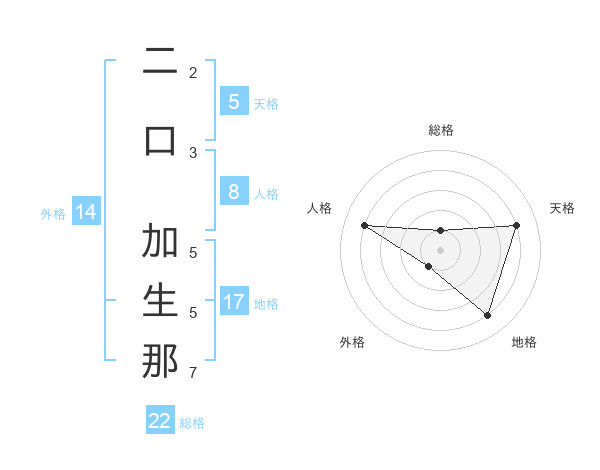 二口 加生那さんの天格は5画の4点!