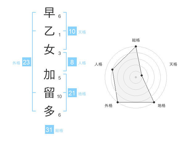 早乙女 加留多さんを姓名の画数から五運を鑑定