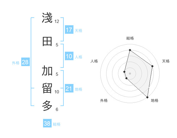 淺田 加留多さんを姓名の画数から五運を鑑定