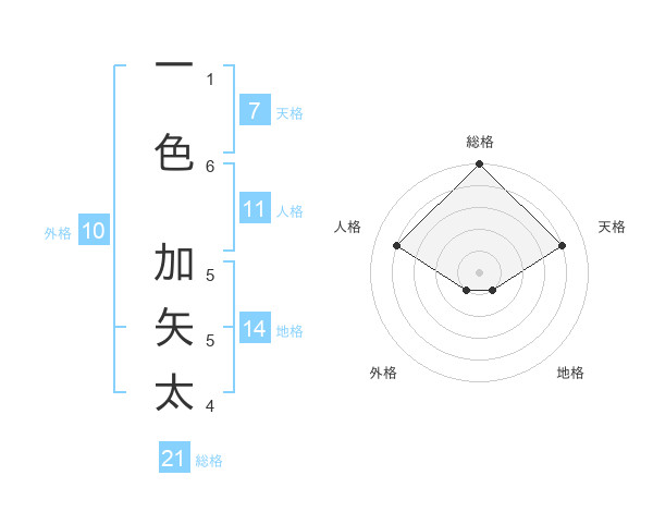 一色 加矢太さんを姓名の画数から五運を鑑定