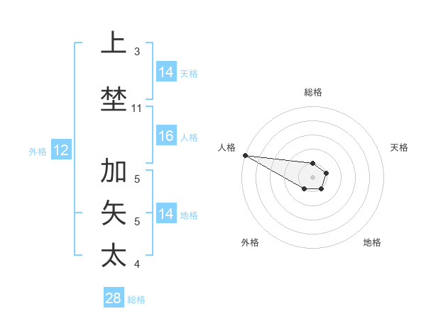 上埜 加矢太さんを姓名の画数から五運を鑑定