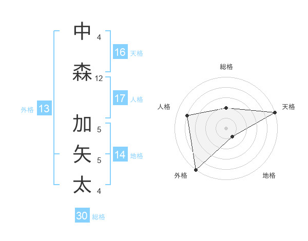 中森 加矢太さんの外格は13画の5点!