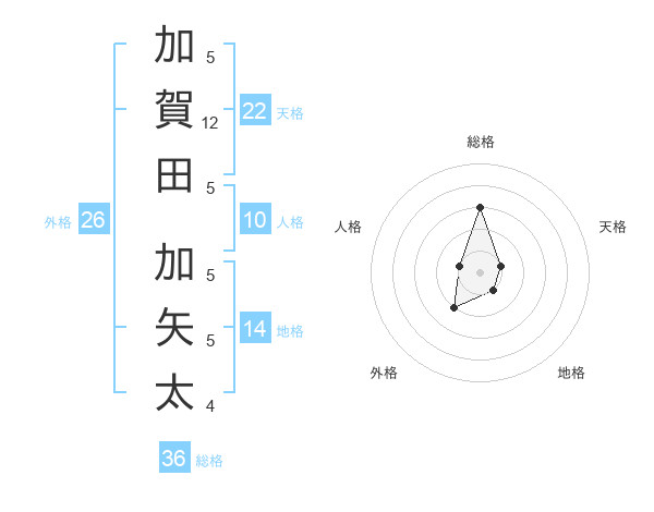 加賀田 加矢太さんを姓名の画数から五運を鑑定