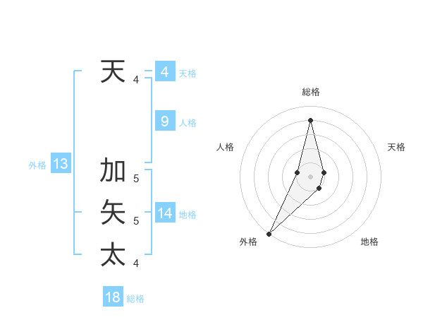 天 加矢太さんの総格は18画の4点!