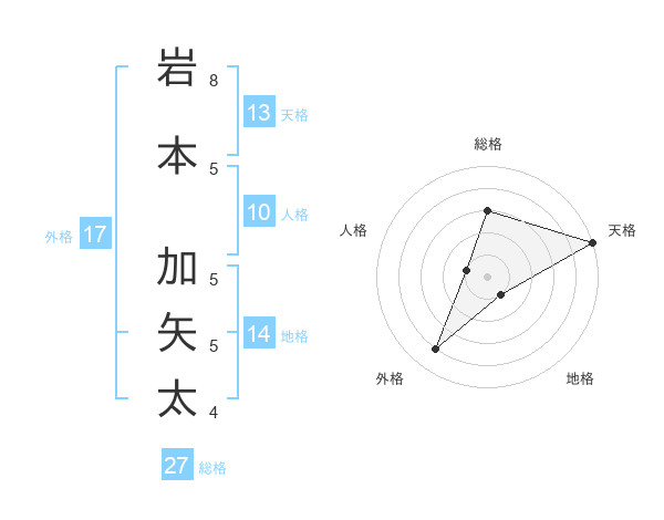 岩本 加矢太さんを姓名の画数から五運を鑑定