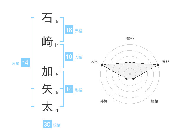 石﨑 加矢太さんの天格は16画の5点!