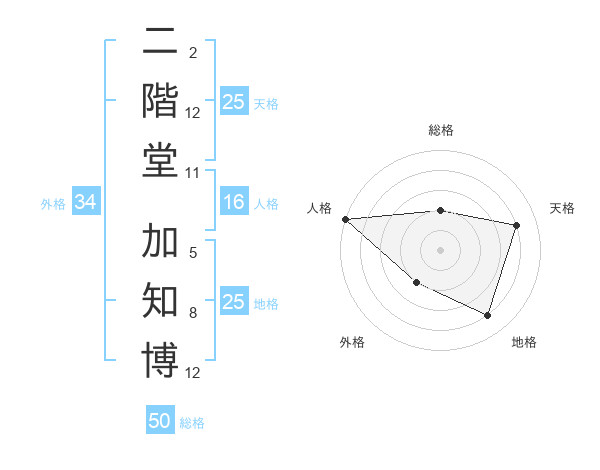 二階堂 加知博さんを姓名の画数から五運を鑑定