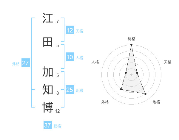 江田 加知博さんの総格は37画の5点!