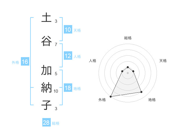 土谷 加納子さんを姓名の画数から五運を鑑定