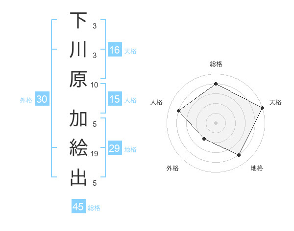 下川原 加絵出さんの総格は45画の4点!