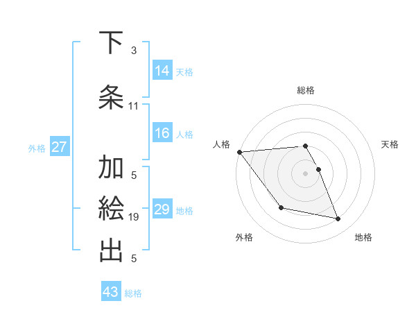 下条 加絵出さんを姓名の画数から五運を鑑定
