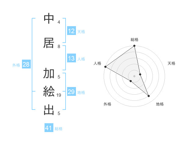 中居 加絵出さんの総格は41画の5点