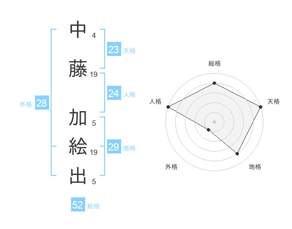 中藤 加絵出さんを姓名の画数から五運を鑑定