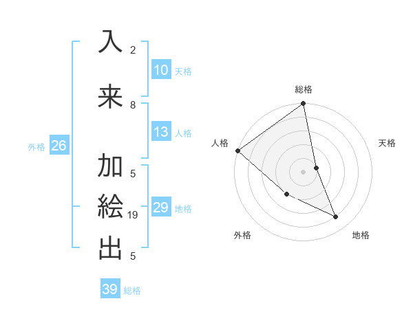 入来 加絵出さんの総格は39画の5点!