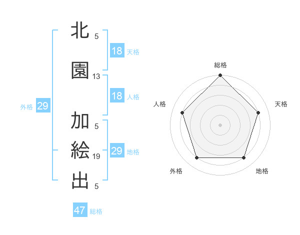 北園 加絵出さんを姓名の画数から五運を鑑定