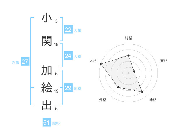 小関 加絵出さんを姓名の画数から五運を鑑定