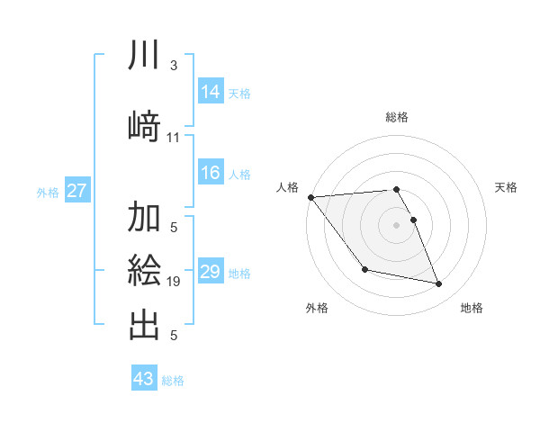 川﨑 加絵出さんを姓名の画数から五運を鑑定