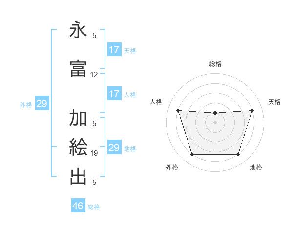 永富 加絵出さんの総格は46画の1点!