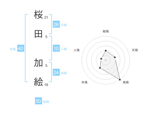 桜田 加絵さんの総格は50画の2点!