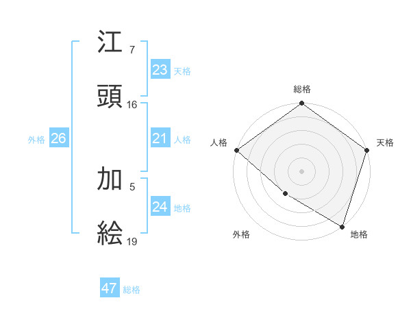 江頭 加絵さんの総格は47画の5点!