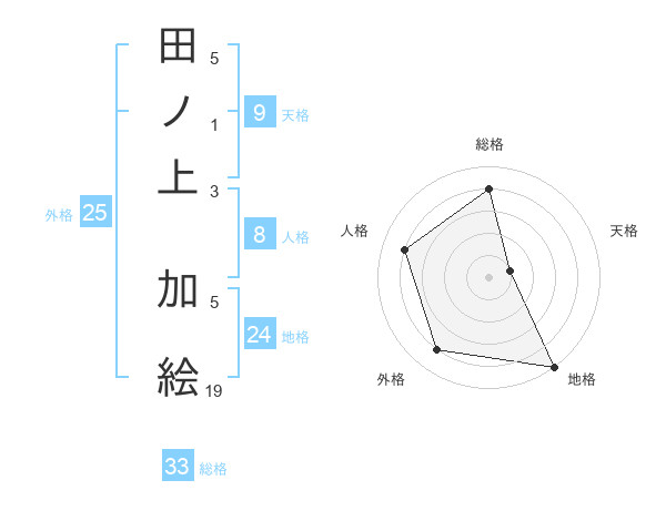 田ノ上 加絵さんの総格は33画の4点!