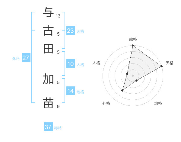 与古田 加苗さんを姓名の画数から五運を鑑定