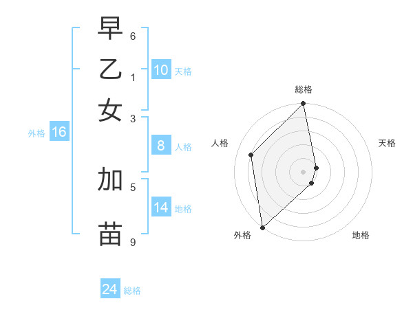 早乙女 加苗さんの外格は16画の5点!