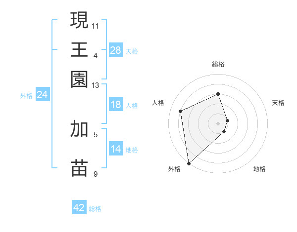 現王園 加苗さんの外格は24画の5点!