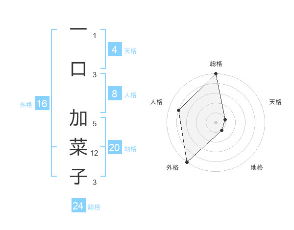 一口 加菜子さんの地格は20画の1点!