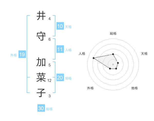 井守 加菜子さんを姓名の画数から五運を鑑定