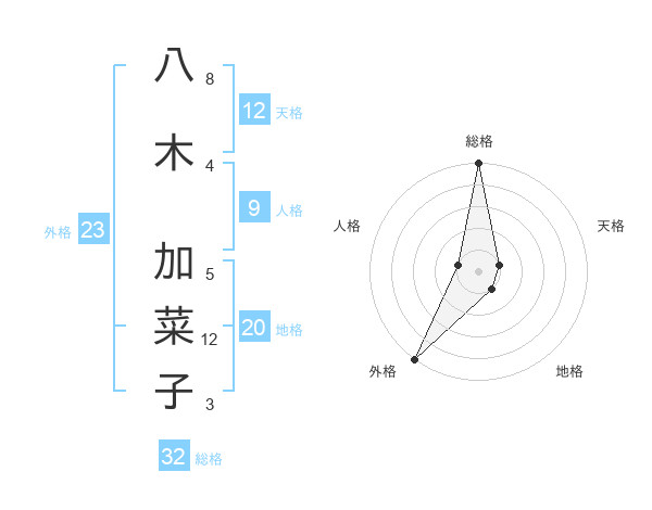 八木 加菜子さんを姓名の画数から五運を鑑定