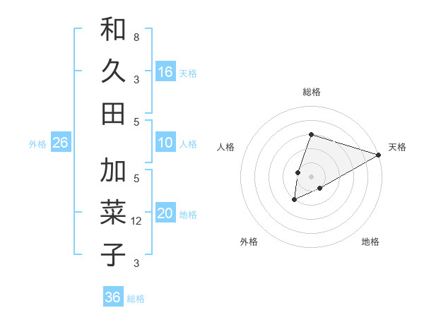 和久田 加菜子さんを姓名の画数から五運を鑑定