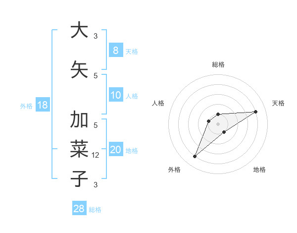 大矢 加菜子さんを姓名の画数から五運を鑑定