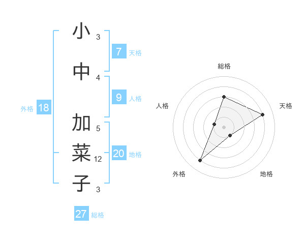 小中 加菜子さんの総格は27画の3点!
