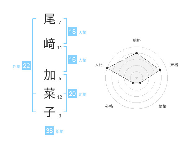 尾﨑 加菜子さんの総格は38画の4点!