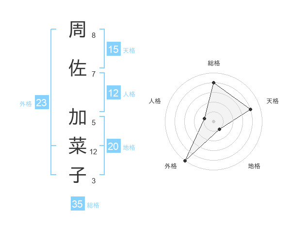 周佐 加菜子さんの総格は35画の4点!