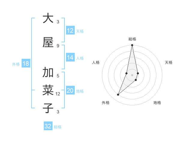 大屋 加菜子さんを姓名の画数から五運を鑑定