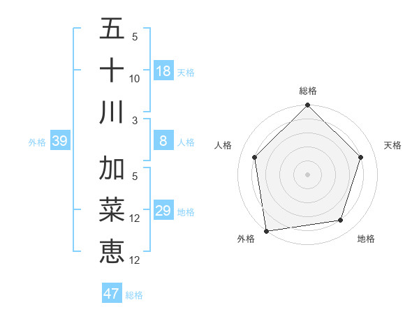 五十川 加菜恵さんを姓名の画数から五運を鑑定