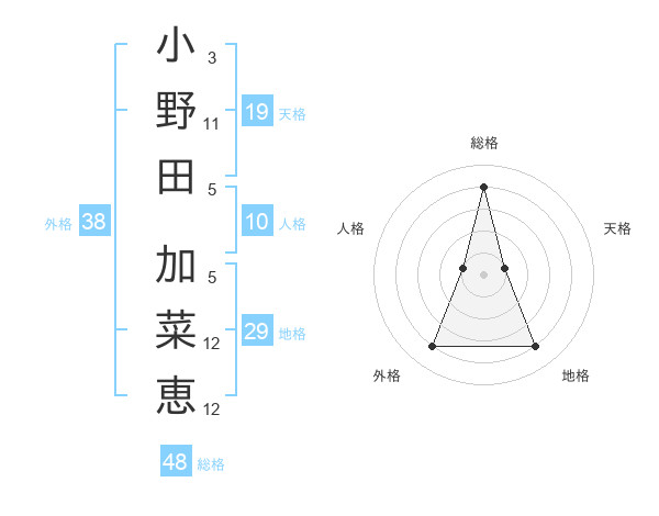 小野田 加菜恵さんの外格は38画の4点!