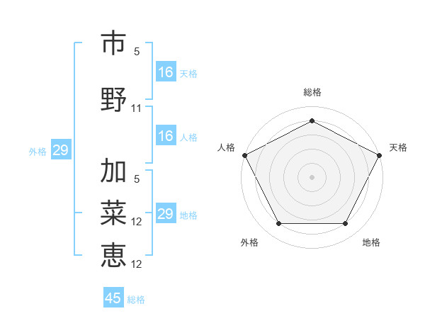市野 加菜恵さんを姓名の画数から五運を鑑定