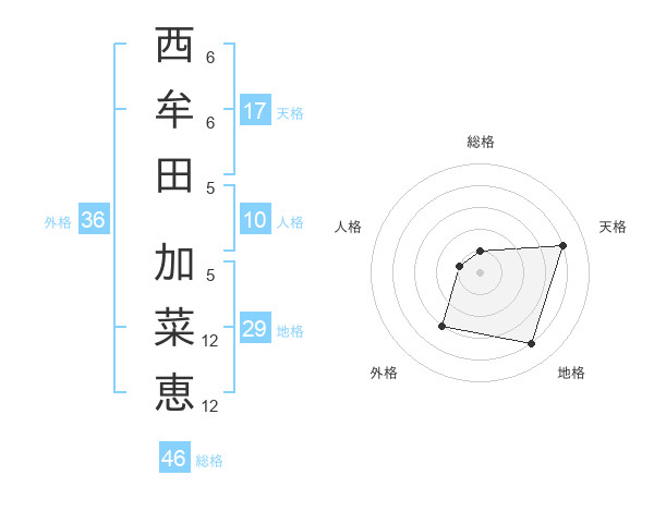 西牟田 加菜恵さんの天格は17画の4点!