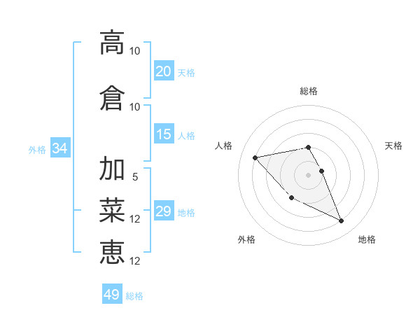 高倉 加菜恵さんの総格は49画の2点