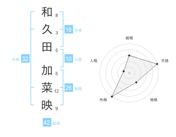 和久田 加菜映さんを姓名の画数から五運を鑑定