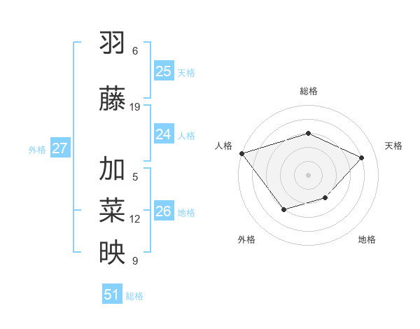 羽藤 加菜映さんを姓名の画数から五運を鑑定