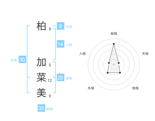 柏 加菜美さんの総格は35画の4点!