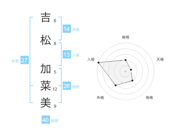 吉松 加菜美さんの天格は14画の1点!
