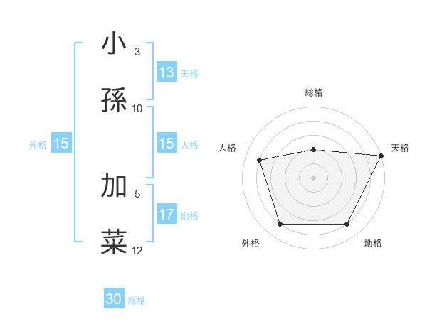 小孫 加菜さんを姓名の画数から五運を鑑定