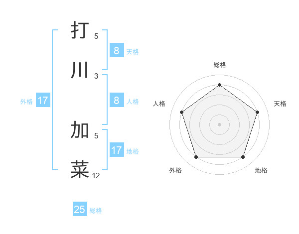 打川 加菜さんの外格は17画の4点!